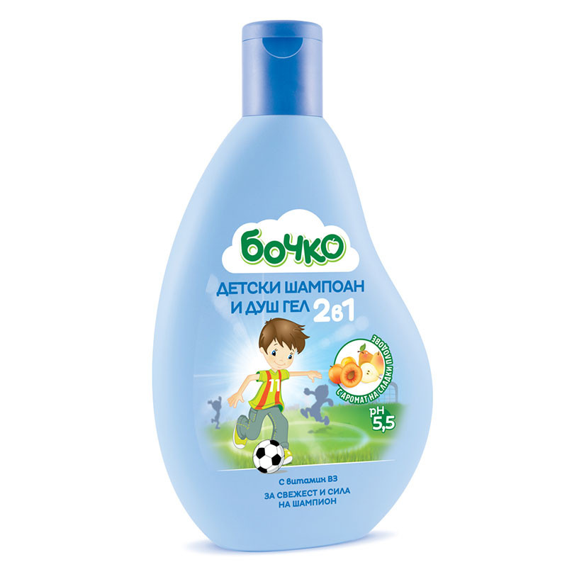 Свежата измиваща формула на шампоана 2в1 Бочко едновременно почиства кожата и омекотява косата.