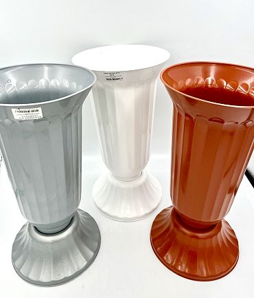 Малка пластмасова ваза, изключително лека и удобна за декорация. Тя е изработена от пластмаса, което я прави лек и устойчив избор за домашни или офис интериори.