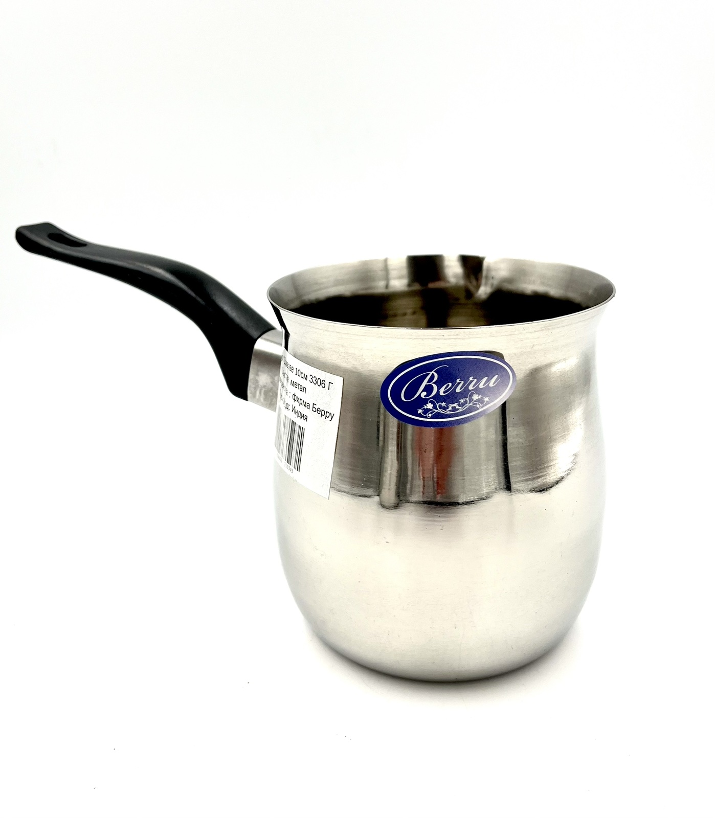 Джезве от алпака с височина 10 см, който се използва за приготвяне на кафе. Той е изработен от здрав метал.