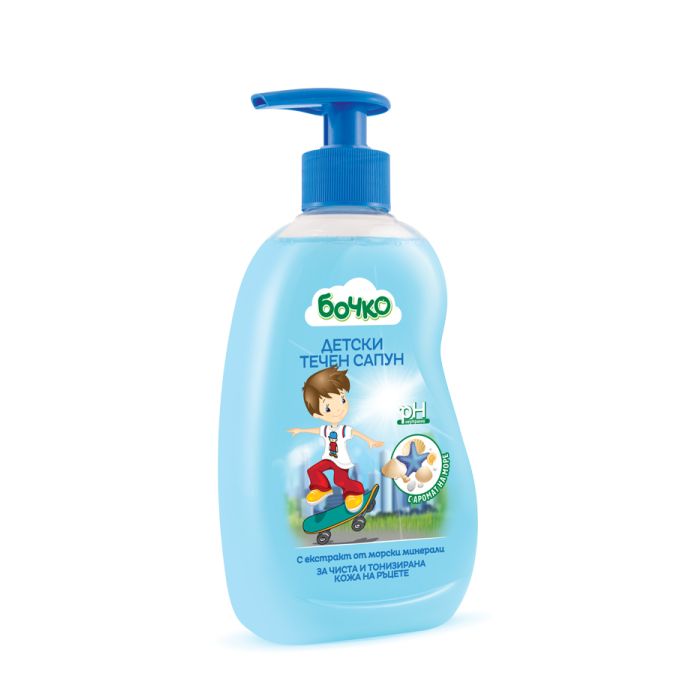 Течен сапун, който почиства и защитава нежната бебешка кожа. Съдържа екстракт от морски минерали с активно тонизиращо действие. Добавеният глицерин пази кожата от изсушаване. Подходящ е за често измиване на ръцете. Има приятен аромат на море.