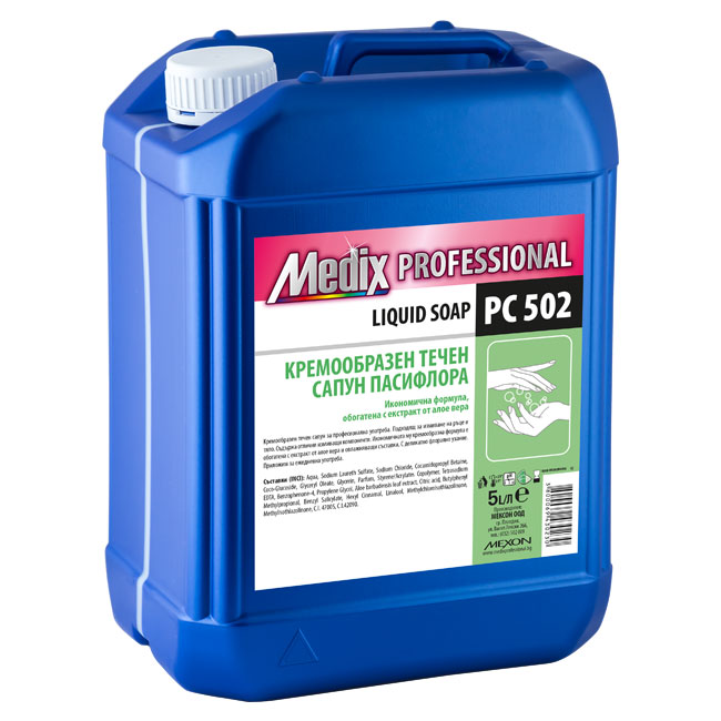 Течен сапун Medix PC 502 антибактериален, 5 литра е висококачествен почистващ продукт с антибактериално действие, предназначен за честа хигиена на ръцете. Формулата ефективно премахва замърсявания и микроби, като същевременно е щадяща към кожата. Подходящ за употреба в дома, обществени сгради, търговски обекти, заведения и институции.