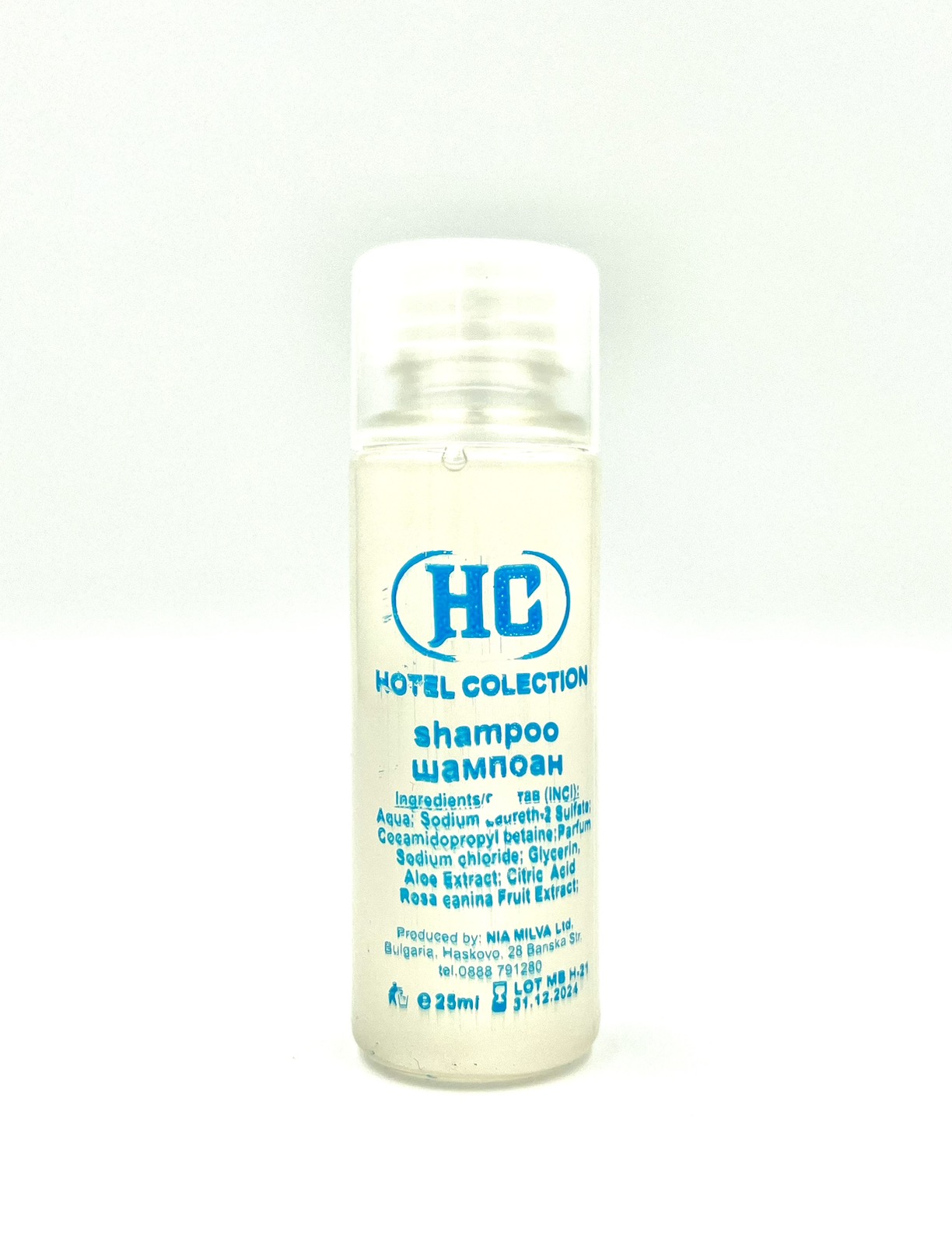 Хотелски шампоан 25 мл. Използва се в хотели и къщи за гости, като е универсален за всякакъв вид коса. Остава дълготраен и приятен аромат. Опаковка 100бр. х 25мл.
