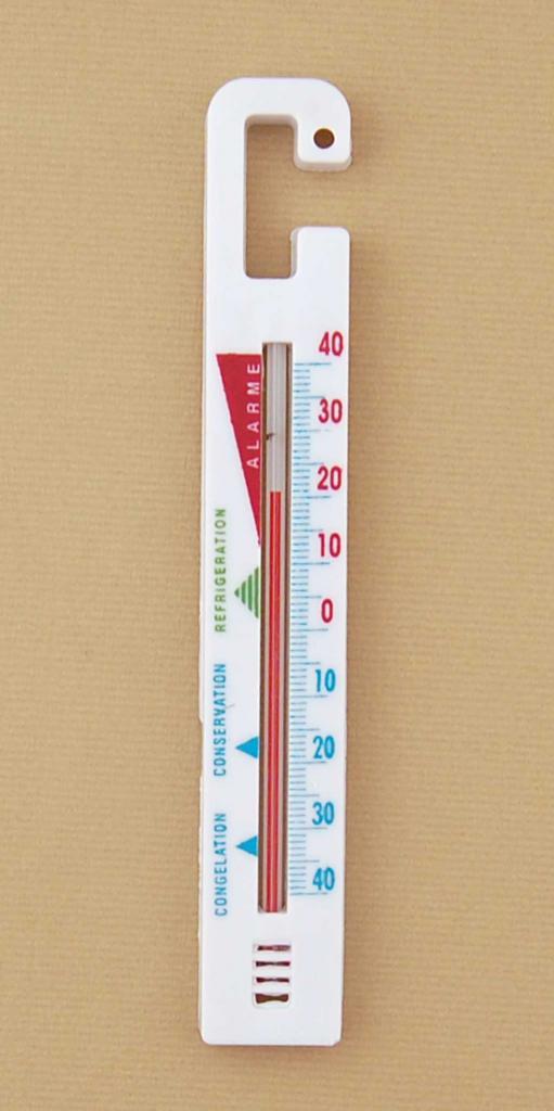 Термометър, който измерва температурата по целзий. Измерва хладилни витрини, хладилници и фризери. Съставен е от пластмаса.