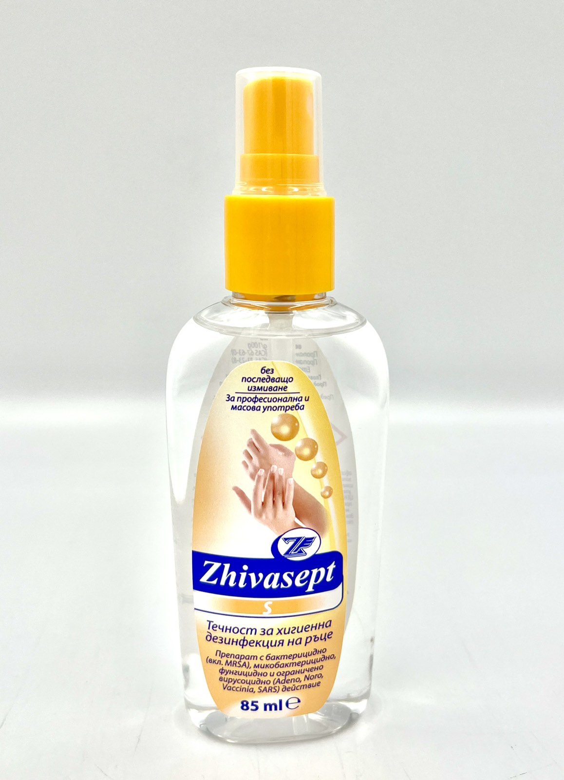 Антибактериалният спрей Zhivasept е ефективен продукт за дезинфекция на ръцете. Той съдържа активни съставки, които убиват бактерии и вируси, което го прави идеален за използване в ситуации, когато нямате достъп до вода и сапун. Спреят е прозрачен и лесен за нанасяне, подходящ за носене в чанта или джоб.