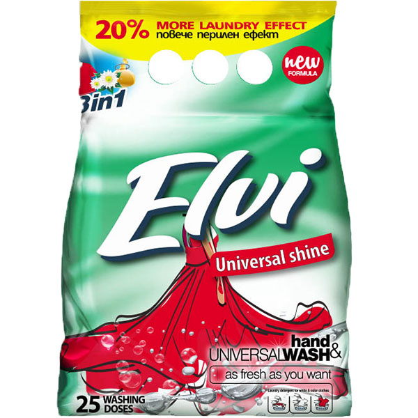 Прахообразен перилен препарат, който е подходящ за бели и цветни тъкани. Премахва най-упоритите петна и замърсявания. След себе си оставя уникален аромат.