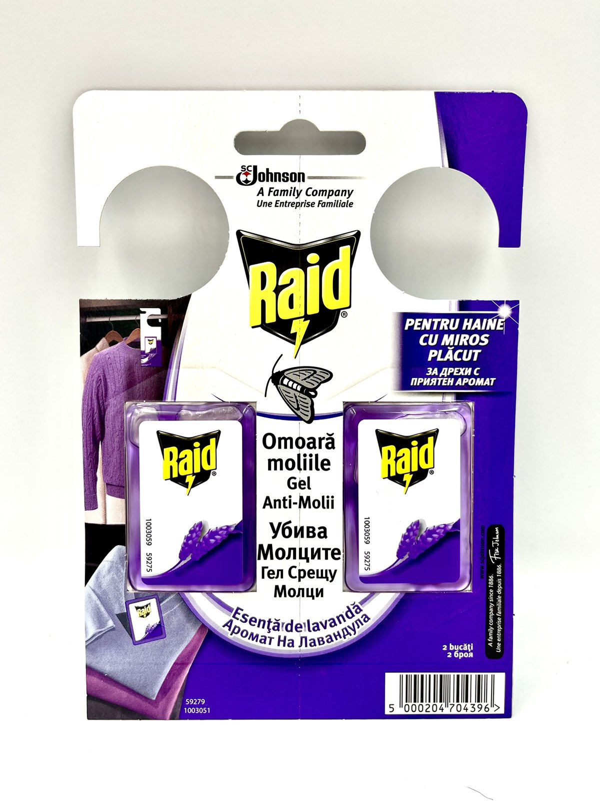 Гел срещу молци. който убива молците през целия сезон, а есенцията от лавандула ароматизира приятно гардеробите и шкафовете във вашия дом.