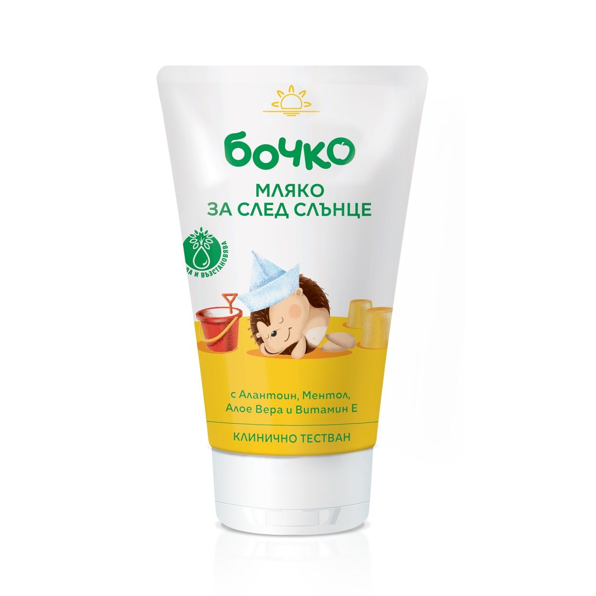 Слънцезащитното мляко има охлаждащ и успокояващ ефект за възстановяването на кожата Ви след изгаряне от слънчевите лъчи. Съдържа алантоин,растителен глицерин и екстракт Алое вера за запазване на кожата и лесно възстановяване. Също така и витамин Е за подхранване и стимулиране от външни фактори и ментол за приятно разхлаждане след употреба. Гладката емулсия се нанася лесно, попива бързо и не оставя следи.
