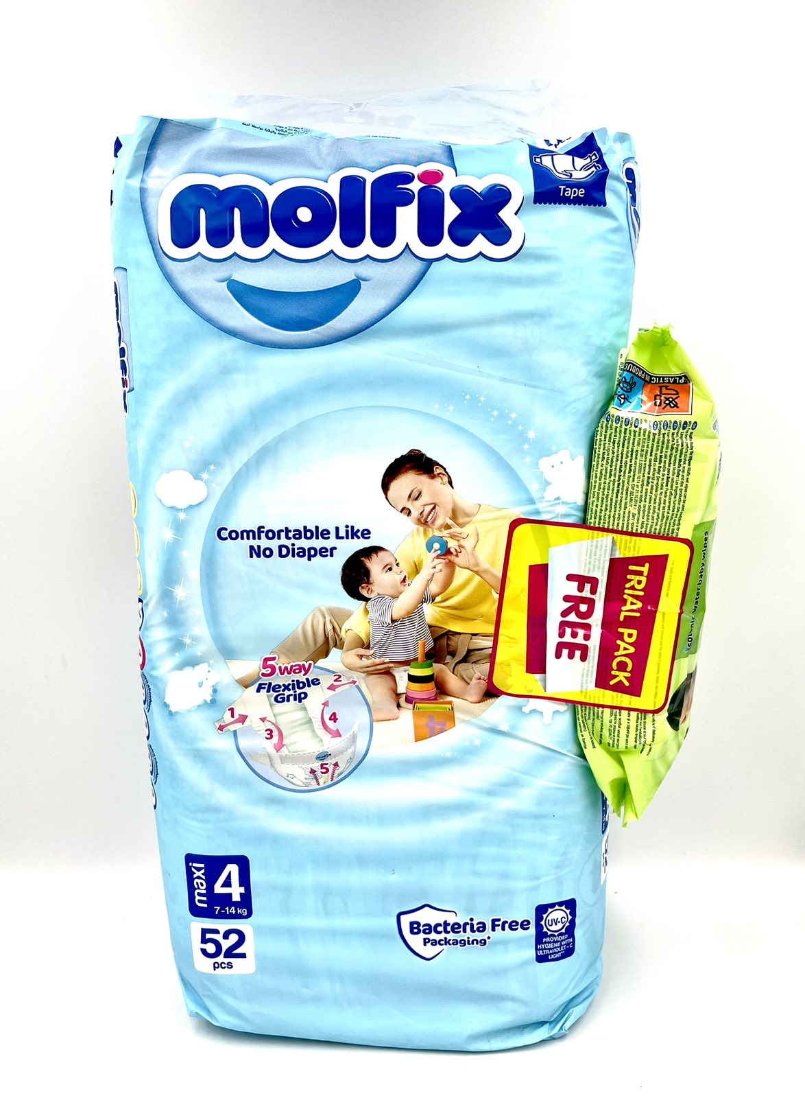 Памперс мolfix №4 7-14 кг.който осигурява страхотна хигиена с ултравиолетова - С светлина. Памперсите са изключително удобни с гъвкаво захващане от 5 страни. Перфектни за бебешката кожа.