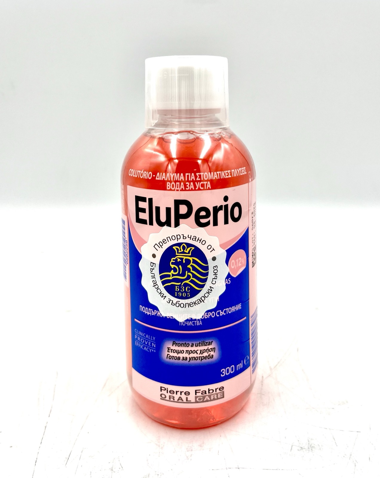Вода за уста Eludril Perio антибактериална 300 мл., която помага при предотвратяване на възпаления на венците — като зачервяване, раздразнение, подуване и кървене.