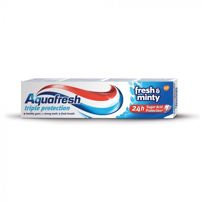 Паста за зъби aquafresh, която осигурява тройна защита и предпазва от кариес. Освежава дъха. Предпазва венците от кървене и възпаления. Клинично тествана.