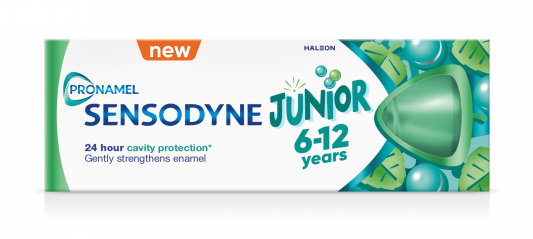 Sensodyne Pronamel Junior е детска паста за зъби, предназначена за деца между 6 и 12 години. Създадена е да предпазва детските зъби от кариеси и да заздравява емайла, особено срещу вредното влияние на киселини от храни и напитки. Има лек ментов вкус, който е приятен за децата и не е прекалено силен.