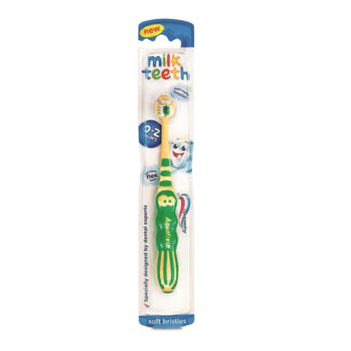 Четка за зъби, която премахва плаката и почиства млечните зъбки. Тя почиства зъбките изключително нежно, благодарение на неините меки снопчета. Предназначена за деца от 0-2 години.