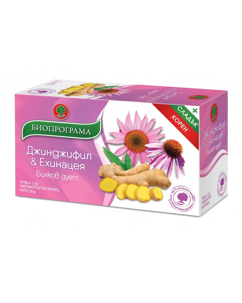 Чай от билки, със свойства за силна имунна система. Сладкият корен действа изключително добре върху белите дробове, а комбинация с ехинацея и джинджифил действа отлично през грипния период от годината. Съставки: стрък ехинацея, корен джинджифил, сладък корен.