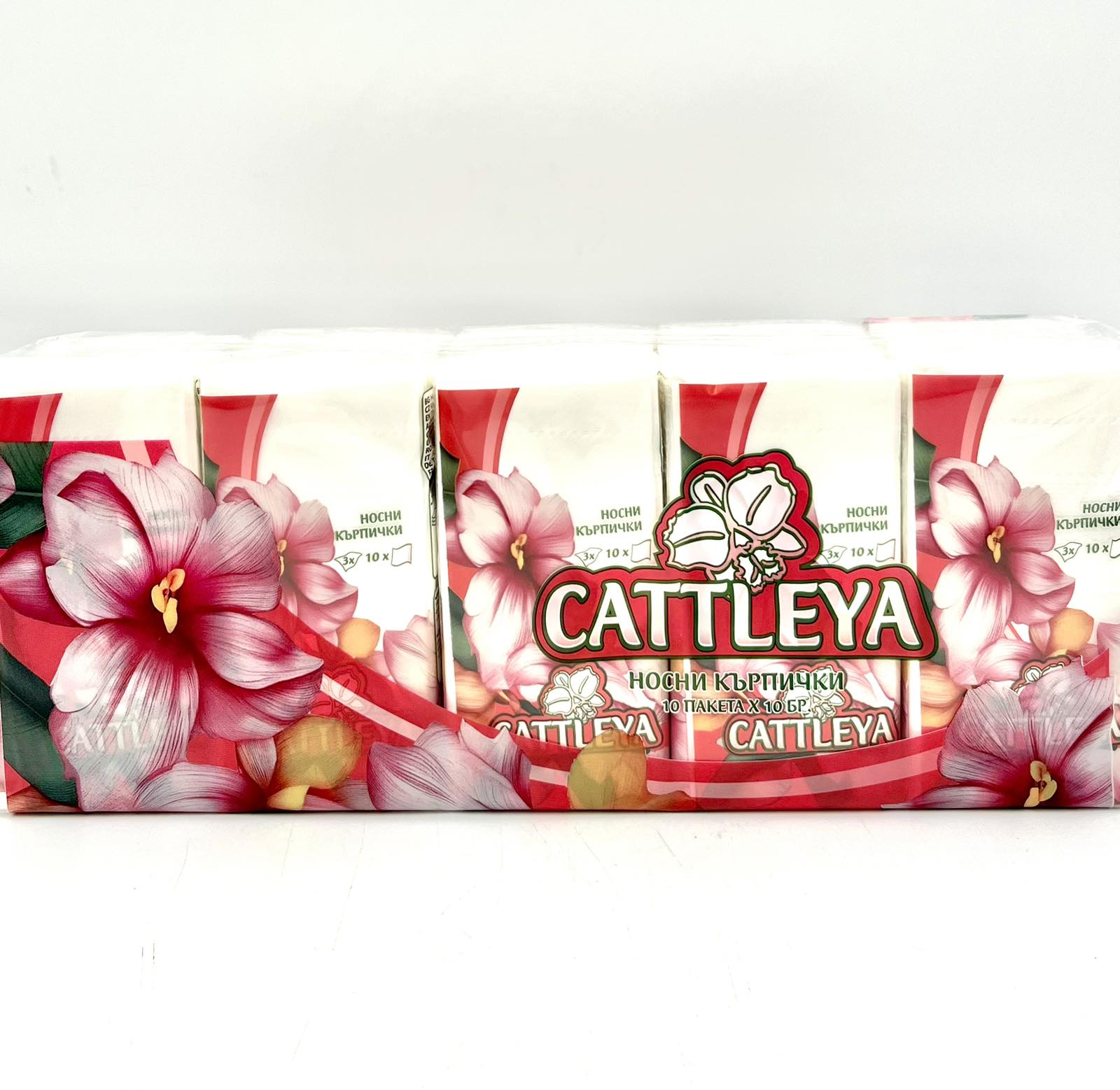 Носни кърпи Cattleya са специално създадени за ежедневна употреба, като осигуряват висока абсорбираща способност и мекота. Тези кърпи обикновено се предлагат в пакет от 10 броя и са изработени от три слоя материал, което ги прави по-здрави и по-удобни при използване, в сравнение с еднопластови или двупластови кърпи. Продуктът е идеален за употреба в ежедневни ситуации – по време на простуда, алергии или просто за поддържане на личната хигиена.